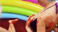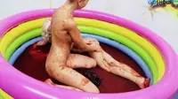 In the enticing scene of this erotic video titled Blonde and Brunette Seduce Each Other in a Red Bath in a Vibrant Inflatable Pool, two stunning women engage in an intense lovemaking session filled with passion, pleasure, and ultimate satisfaction.The blonde woman is an epitome of seductiveness and temptation, while the brunette exudes charm and allure as they both dive into an ocean of sensual delights together.Their desire for each other burns brightly, drawing them in and igniting a fire that can only be quenched by their mutual affection.As the ladies step inside their inflatable pool, its vibrant colors creating a festive atmosphere around them, they share lustful glances filled with erotic intent.Their bodies meld together like two pieces of a puzzle, as the brunette begins to explore her blonde partners sensual terrain.She starts by tenderly licking the blonde womans cunt, exploring every curve and crevice with expert precision.The blonde responds enthusiastically, moaning softly in delight, as the brunettes tongue dances on her labia and plays with her clit, causing shivers of pleasure to run through her body.The two women continue to tease one another, exchanging sultry kisses that ignite their passion anew.The blonde cant resist running her fingers through the brunettes stockings and lingerie, feeling the silky texture against her skin as she pulls them closer together.Her hands roam over her lovers curves, pausing to squeeze and knead those succulent buttocks before continuing upwards, fondling and kneading those sensitive nipples through her lacy bra.The blonde then expertly spreads the brunettes labia with her fingers, allowing her clit to peak through for her lover to feast upon.The brunette eagerly takes it in her mouth, teasing and tempting it as she slowly begins to use her naughty finger to probe the blondes wet depths.This tantalizing act fills their bath with waves of arousal, and both women are soon drowning in their own juices, desperate for more pleasure to come.As their lovemaking escalates, they switch roles the brunette eagerly awaits her blonde partners touch while the blonde eagerly anticipates tasting the fruits of her labors.With a knowing smile, she slides down between her lovers legs, ready to take her to new heights of euphoria and delight.She tenderly kisses and licks her way back up, finding the brunettes clit with unerring accuracy as they continue to explore each other in their joyous bathtime adventure.As the blonde woman lubricates her fingers with saliva, she starts fingering her lovers wet cunt.The brunette cant help but buck her hips and meet every thrust of the blondes hand, groaning with pleasure as it drives them both closer to climax.The water in their bath splashes around them, adding an erotic element to the mix as they ride out the wave of their passion together.As the passion reaches its zenith, both women find themselves in a state of blissful happiness, their eyes locked onto each others with mutual admiration and gratitude for the delightful experience they have shared.They revel in their connection and the overwhelming sensations that have filled their bodies and souls, leaving them both feeling complete and sated as they continue to revel in this carnal dance.In this scene from Blonde and Brunette Seduce Each Other in a Red Bath in a Vibrant Inflatable Pool, we witness an intimate exploration of love, desire, and the exquisite power of two women coming together in a moment of ecstasy, leaving them both feeling fulfilled and yearning for more.